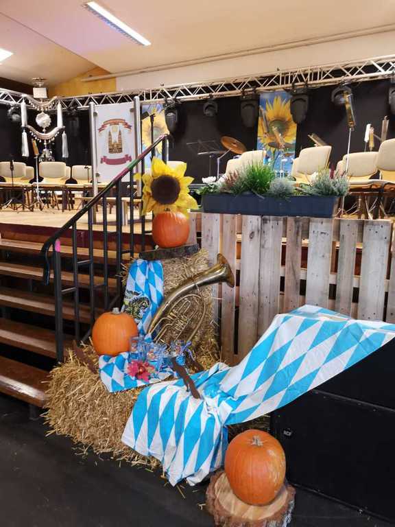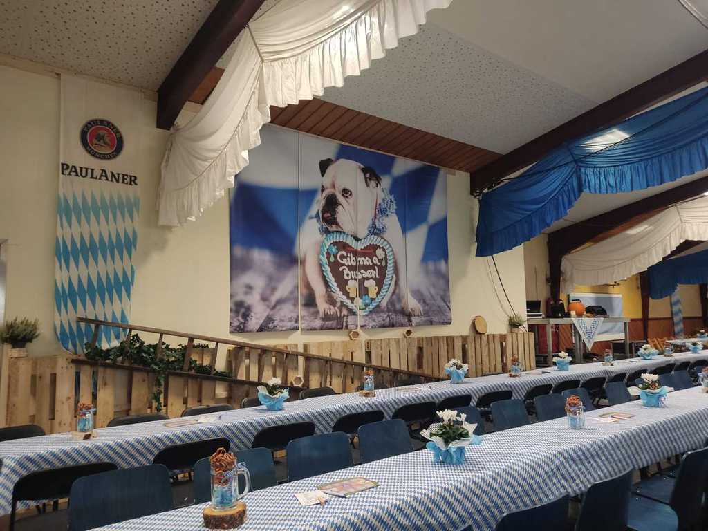 Geschmückte Halle zum Oktoberfest der Musik Oktober 2022